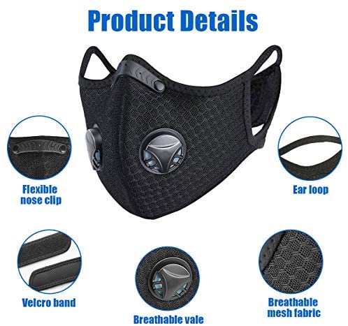 Home Sports and Outdoor Colbiz Dust Mask Reusable Activated Carbon Windproof Dustproof Masks with 5 Filters, Adjustable Breathable Sports Face Mask for Running Cycling Motorcycle Mowing Woodworking Outdoor Activities